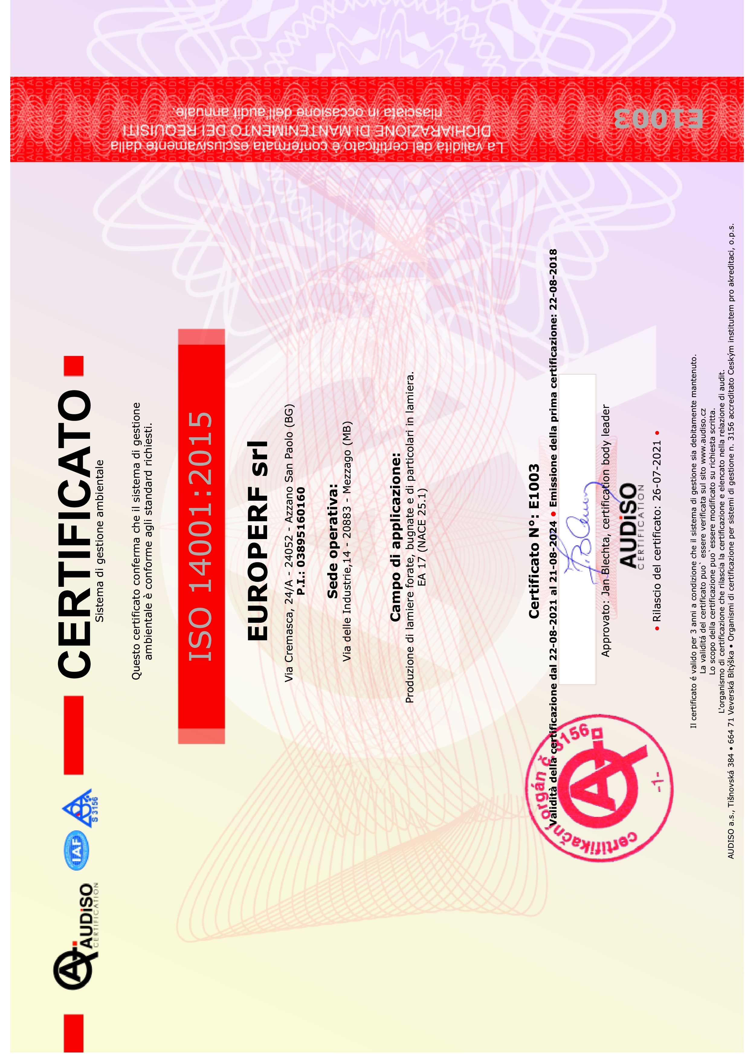 Our attention to the welfare aspect – referring to people, their workplaces and the environment – is combined with that for safety: for this reason, Europerf also protects the customer thanks to the AVIVA insurance for third-party liability concerning our products.